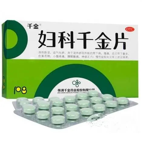 Fuke Qianjin Pian helps clearing away heat and remove dampness,invigorating qi and removing blood stasis.