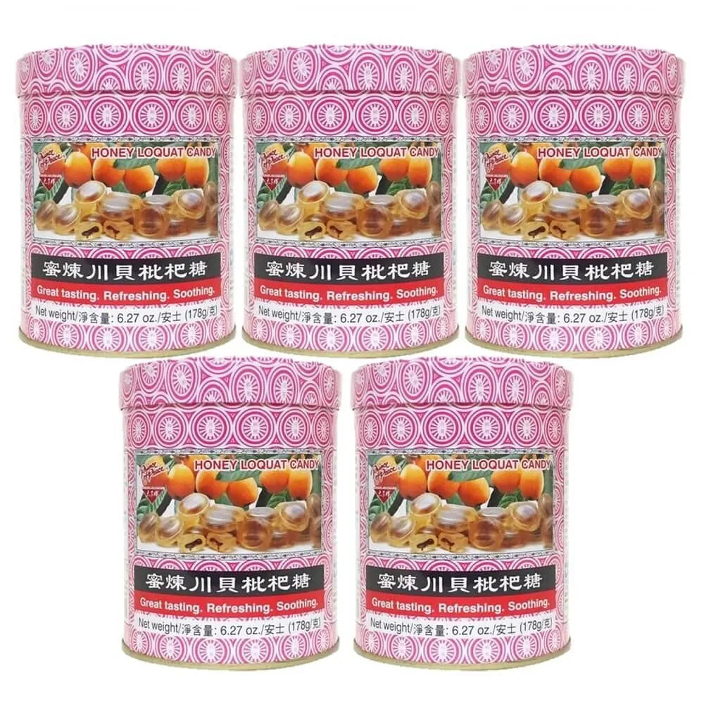 5 Tins Honey Loquat Candy, Helps to Refresh & Sooth Throat (6.27 oz.)