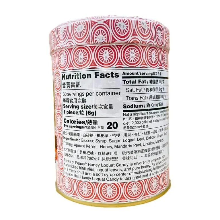 Great Tasting. Refreshing. Soothing. Prince of Peace Honey Loquat Candy has a hard mint flavored shell with a soft honey loquat center with a natural blend of unique herbs. In addition to its great taste, Honey Loquat Candy is pleasantly refreshing and soothing. It can be enjoyed every day of the year.