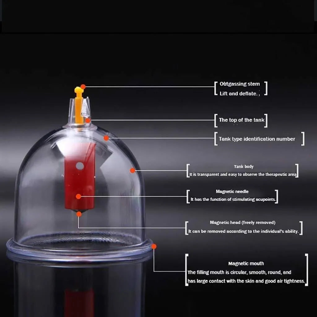 - Operation Simple: easily use pressure release valves, equipped with removable bio magnetic points, cupping with or without magnets is up to you, Magnets are designed to provide an acupuncture point to the skin it comes in contact with. at home that also can enjoy vacuum cupping massage