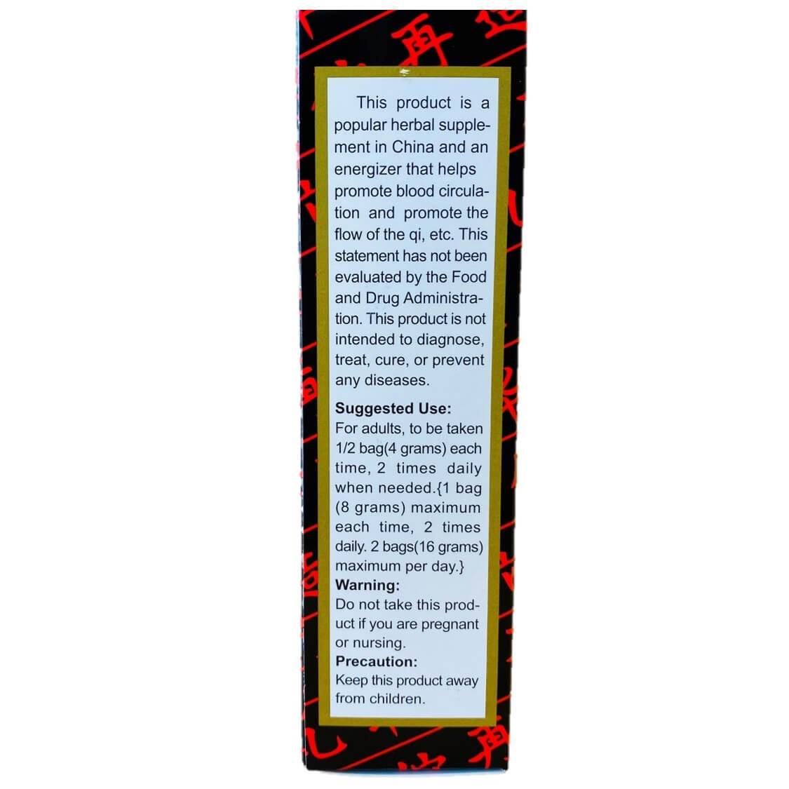 Ingredients: Sophorajaponica, panax ginseng, Schisandra Chinensis, Ophiopogon japonicus, Gentiana macrophy lla, angelica dahurica, angelica sinensis, ligusticum wallichli, cinnamomum cassia.