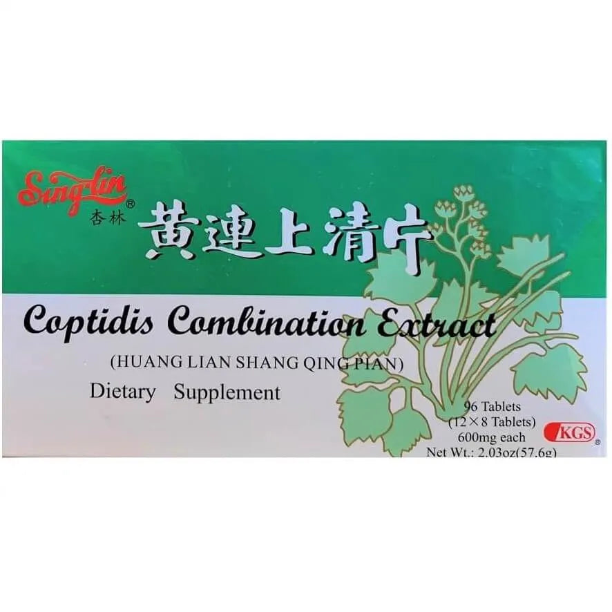 Huang Lian Shang Qing Pian is an herbal supplement that supports the health of the upper area of your body, including the head, ears, tongue, throat, mouth, and gums. Benefits This herbal supplement is used a great deal in China to support the upper respiratory system. It contains rhubarb rhizome, which is effective in relieving an occasional upset stomach. This formula is extra strength 600mg per tablet.