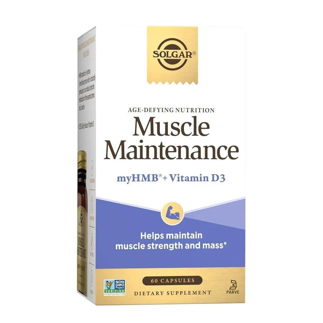STRENGTH: Solgar's Muscle Maintenance features HMB (β-Hydroxy βmethylbutyrate) a substance in the human body naturally produced during the breakdown of leucine, an essential amino acid that plays a crucial role in protein synthesis and muscle repair