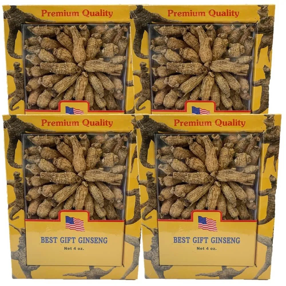 4 Boxes of Premium American Ginseng Root Medium Short Size (4 oz box)